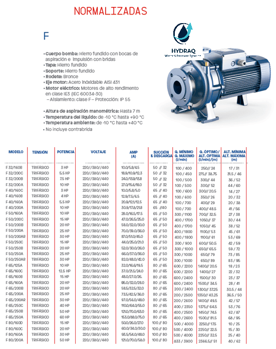 📌 Revisa las imágenes para conocer los modelos disponibles, potencias, caudal y altura de cada bomba.