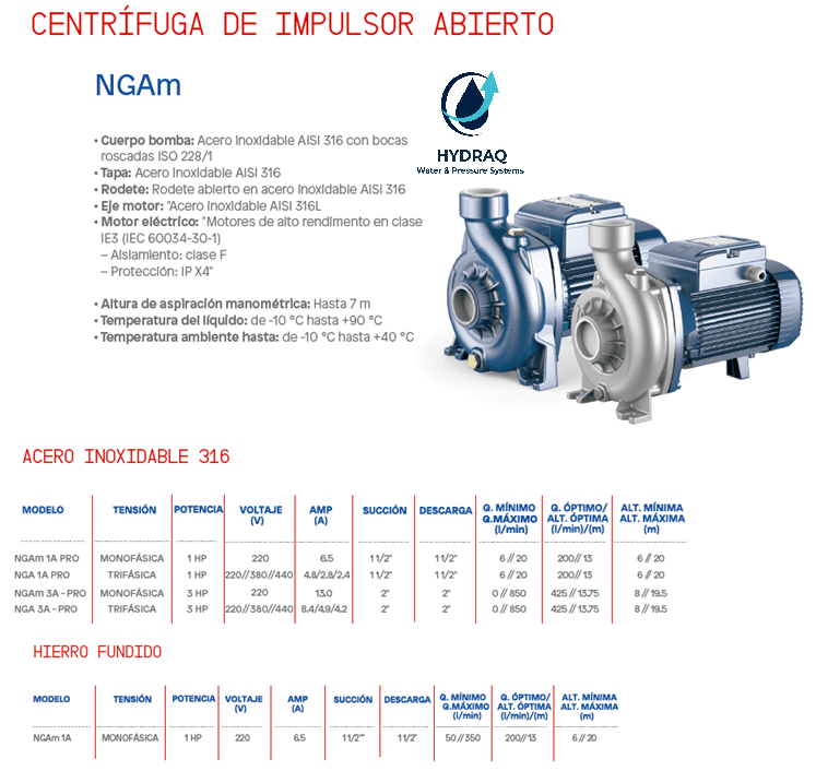 📌 Revisa las imágenes para conocer los modelos disponibles, potencias, caudal y altura de cada bomba.
