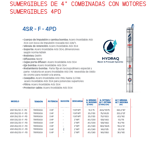 PEDROLLO 4SR45G/50 DE 5.0 HP. Ø 2” TRIFÁSICA