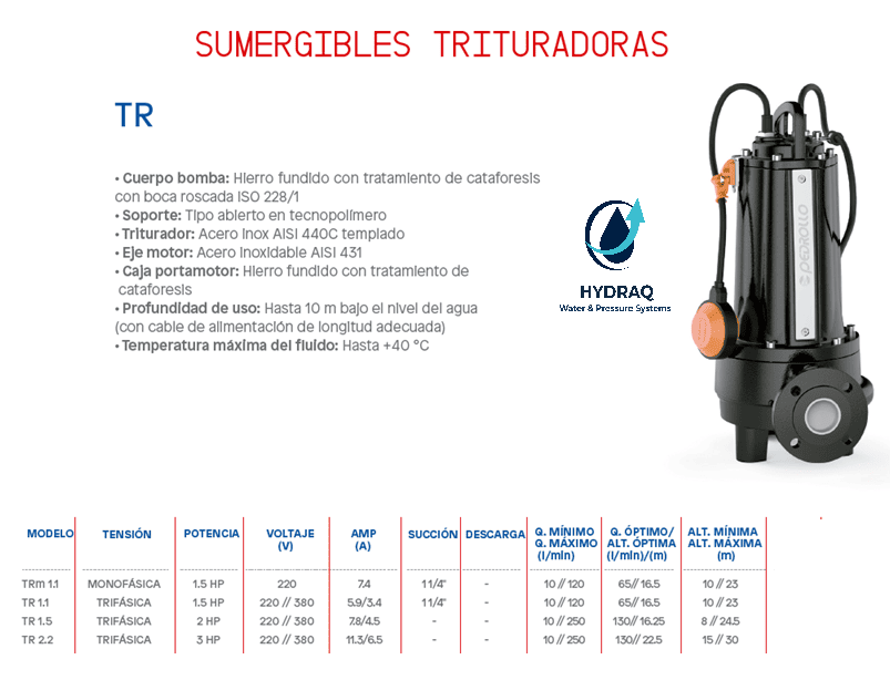 Tipo: Bomba centrífuga sumergible trituradora