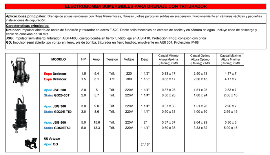 electrobomba sumergible ESPA DRAINCOR de 1.5 HP 220V – 380V